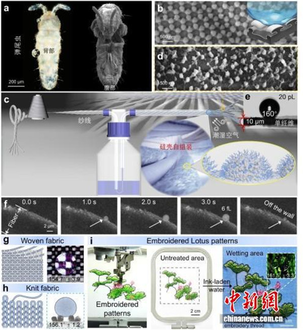 据介绍,在户外、防护、工业等众多领域,具备稳定防水性能的纺织品需求迫切,而传统依赖纳米颗粒或含氟化合物(PFAS)的防水涂层在磨损或恶劣环境中易脱落降解,且面临日益严格的环保监管挑战,难以满足实际应用中的高性能与可持续性需求。 此次研发的MARS技术,其灵感来源于经过4亿年进化的弹尾虫。在潮湿且多摩擦的泥土环境中,弹尾虫演化出由微型蘑菇状结构与纳米级脊线构成的特殊表皮,这一天然“防水盔甲”让其能在恶劣条件下自由活动,甚至在水面跳跃而不被润湿。研究团队受此启发开发出一种共价键构筑的MARS技术,通过一步法在单根纱线纤维表面直接构建有序、共价键合且不含氟的烷基覆盖的二氧化硅壳层。