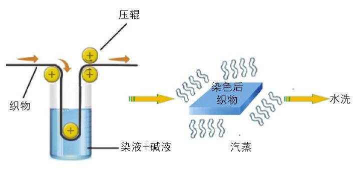 活性染料无盐染色技术 活性染料染色过程中盐用量大、染料利用率低、能耗和水耗高、一次成功率低,一直是印染行业可持续发展的重大瓶颈。由青岛大学牵头研发的活性染料无盐染色技术突破了传统染色理论和无盐染色技术瓶颈,研发了织物和棉、麻原纤维无盐染色成套技术和装备,开发了全色谱系列无盐染色专用活性染料和固色碱剂。