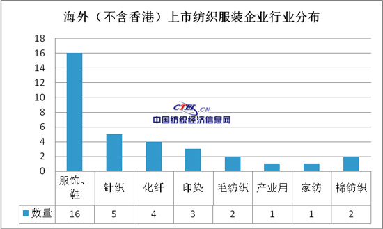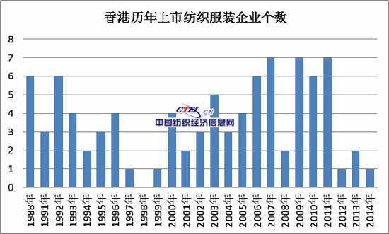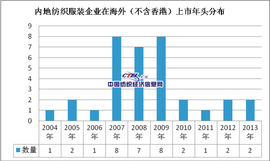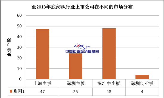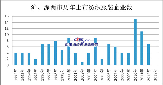 从1990年第一家纺织企业深原野在深圳证券交易所(试运营)上市以来,至2014年1月止共有143家纺织服装企业通过首次公开发行、借壳重组等方式先后在上海、深圳两个证券交易所实现上市。