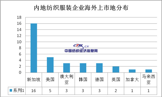 CTEI网讯 截至2014年1月我国在全球各主要证券交易所上市的纺织服装企业(主营业务为化纤、纺织、鞋服)约248家。其中在沪、深两市上市企业124家,占沪深全部上市公司(2,510家)的4.98%,在香港联交所上市企业90家(小部分是香港本地公司,但主要业务已经转移至内地,大部分是在海外注册香港上市的红筹公司,以及很少的几家H股),占全部联交所上市公司(1,708家)的5.27%。作为一个传统行业,在新型行业和产业不断涌现的今天,能够有这样的成绩难能可贵,这要归功于几十年来,特别是进入新世纪以来,纺织工业在市场力量的推动下持续不断地转型升级。中国纺织服装产业已经、并将继续成为向我国乃至全球证券市场输送优质上市资源的重要来源。248家企业在全球主要证券市场的分布如图1: