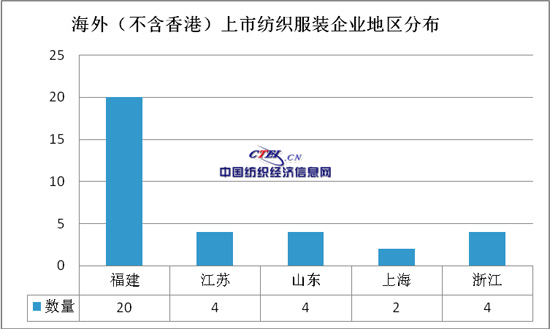 在主营业务仍然为纺织服装的124家企业中,在上海主板上市的47家、在深圳主板上市的25家、在深圳中小板上市的48家、在深圳创业板上市的4家(如图2)。