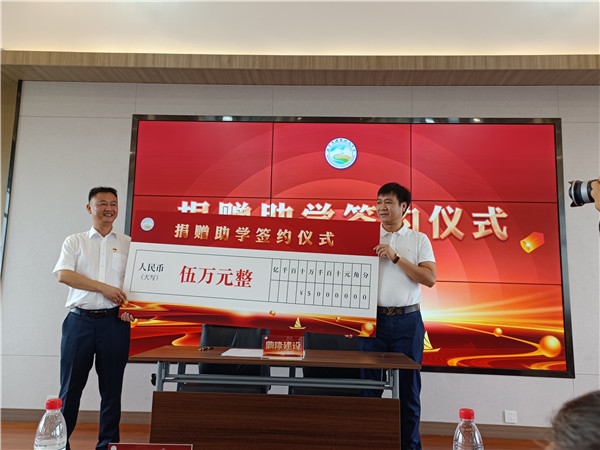 签约仪式后,海昌街道办事处钱国平副主任首先对海宁市海昌初级中学(海宁经济开发区实验初级中学)正式启用表示热烈的祝贺, 向商会两家会员企业捐资助学的爱心行动表示感谢。 钱国平表示, 希望海昌初级中学紧紧抓住发展机遇,负重前行,奋发有为,谱写区街教育事业新篇章,把海昌初中办成一所学生开心,家长称心,领导放心,社会满意的一流学校,为推动区街经济社会的可持续发展做出新的更大贡献。 海宁经济开发区(海昌街道)商会拥有186家会员单位,全体会员都有一颗红亮的心,都是一副古道热肠。近年来,在慈善救助、助学帮困、虚拟岗位、山海协作等共同富裕方面,都活跃着区街商会会员的身影。 这次捐赠的美看、罗纳两家企业,都是商会企业代表,他们从商会工作人员调研企业中得知,区街新增的海昌初中因教学教育发展的需要,尝试与商会开展校企合作,两家企业主表示愿意捐款,为教育事业出一份力。
