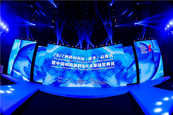 启幕秀现场,虚实交互的数字之花熠熠生辉,为观众展现了生机勃勃的永恒魅力。作为时尚周启幕的首场大秀,2023/24秋冬中国国际时尚趋势发布秀以兼具绿色设计和先进工艺的品质创新成果集合呈现了中西创意合璧、文化艺术交融的未来风尚。2022中国时尚面料设计大赛颁奖典礼同时在启幕秀上举行。 时尚周启幕秀上,重磅嘉宾云集: 工业和信息化部消费品工业司一级巡视员 曹学军 国际纺织制造商联合会主席、中国纺织工业联合会会长 孙瑞哲 中国纺织工业联合会秘书长 夏令敏 中国纺织工业联合会生产力促进部主任、中国纺织信息中心主任 乔艳津 中国纺织工业联合会社会责任办公室主任 阎岩 国家纺织产品开发中心主任 李斌红 中国纺织信息中心副主任 李波 国家纺织产品开发中心副主任 张彤 国家纺织产品开发中心总工程师 陈宝建 中国流行色协会副会长 齐梅 中国纺联流通分会秘书长 王水元 绍兴市委常委、副市长 王涛 柯桥区委书记 陈豪 柯桥区委副书记、区长 袁建 柯桥区人大常委会主任 朱晓董 柯桥区政协主席 吴海洋 柯桥区委副书记、政法委书记 陈利华 绍兴市政府副秘书长 高波 柯桥区委常委、中国轻纺城党工委书记 袁笑文 柯桥区政府副区长 王艳春 柯桥区政府党组成员 毛学斌