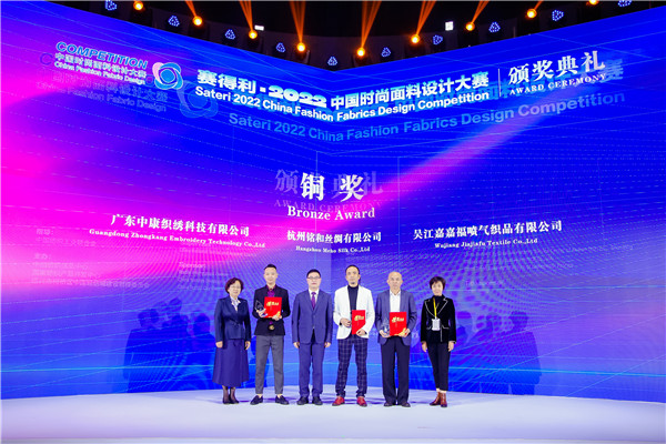 赛得利·2022中国时尚面料设计大赛颁奖典礼上,主办方颁发了金奖、银奖、铜奖三项综合奖及时尚色彩奖、创新科技奖、莱赛尔市场应用奖、优可丝®市场应用奖、莱赛尔纱线合作企业创新奖和优可丝®纱线合作企业创新奖等单项奖。本届大赛共收到316家企业的近2000款面料参评,最终评选出了一批体现时尚创新方向、代表行业时尚水准的优秀产品,取得了丰硕的成果。