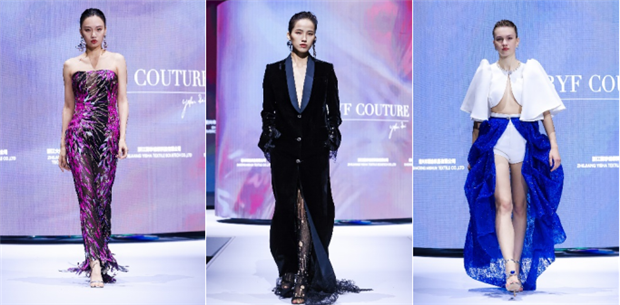 “中国时尚面料设计大赛”始于2017年,今年是第六届。大赛作为中国纺织行业具有开创性和引领性的国家级专业赛事,多年来与柯桥、赛得利密切合作,基于加速可持续时尚发展变革的共识,为赛事从行业平台、产业资源、纤维源头三个层面构建了完整的时尚创新体系,为行业带来了时尚发展可借鉴的创新范式。 品质加持,高端设计诠释时代之美 2023/24秋冬中国国际时尚趋势发布秀炫丽来袭,为本届时尚周拉开了多彩的大秀帷幕。米顺纺织、大树纺织、懿纱纺织、永耀纺织、晶远花型、望樾坊布行、川潮纺织、素色纺织、宇华集团、蜀润纺织、乐古古纺织11家柯桥优秀面料企业,携手柯桥经纬大师设计师白曳帆、瑞典设计师Charlotta Gandolfo、金顶奖设计师张义超联袂呈现了东方与西方潮流辉映、传统与现代文化交融的时尚盛宴。 在“造梦者”主题秀演中,白曳帆以都市人群内心对自由、快乐的向往为创意出发点,借助柯桥优选面料的高品质,把仿丝毛、醋酸缎、绣片蕾丝、TR面料等成衣面料做出惊艳的礼服效果,复刻人们内心潜藏着的那个五彩斑斓的梦境。白曳帆对柯桥企业印象深刻,他表示,“企业非常热情且配合,柯桥面料的门类很全面,质感也很不错。”