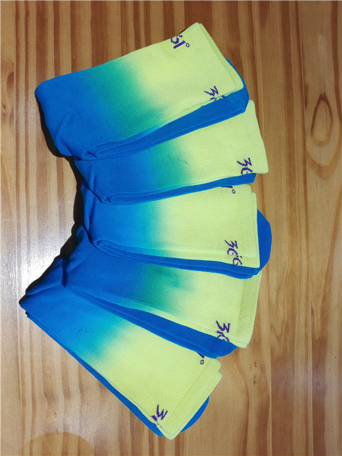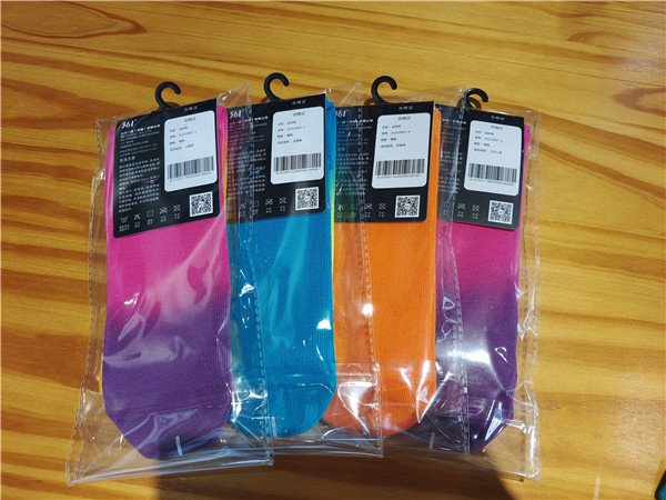 时间回到两年前, 361°交给美看公司几款袜子打样的任务,还透露这批袜子将作为杭州亚运会火炬手、志愿者专用袜,公司人员得知很是兴奋,又感到一定的压力和责任。随后,大家分头行动,公司选购了纤维长、纱线平整度高的32支新疆棉作为原料进行织造,把每双袜子做得更精致。为了把这些袜子染色好,洗后不褪色,公司人员选了周边两家企业对袜子染色试样,测试后,着色效果不理想,最后在绍兴一家扎染厂完成了染色,各方面工艺质量符合要求。其次,对这批亚运袜子的质量,公司质量管理几乎做到了极致,通过“袜机上的巡检、后道全检、成品检验和QC抽检”这四道检验关,确保这批袜子质量关,达到体育赛事运动袜的质量标准。今年三月份,这批亚运会专用运动袜子20万双,运抵361°入库。
