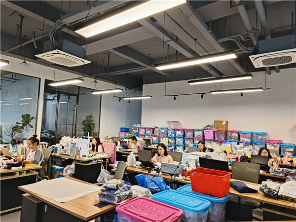 潘新明看展示的袜子 浙江美看服饰有限公司创办于2006年,是一家专业生产各类高端运动袜、儿童袜、成人袜的生产商,与特步、361°、Vans、UGG、Lee等国内外知名品牌开展合作。与运动品牌361°有着8年的深度合作经历,这次公司承接的杭州亚运会运动袜订单,袜子总数量近20万双,主要用作志愿者、火炬手、护跑手和工作人员的运动袜,其中,亚运志愿者袜子数量最多,占到80%。