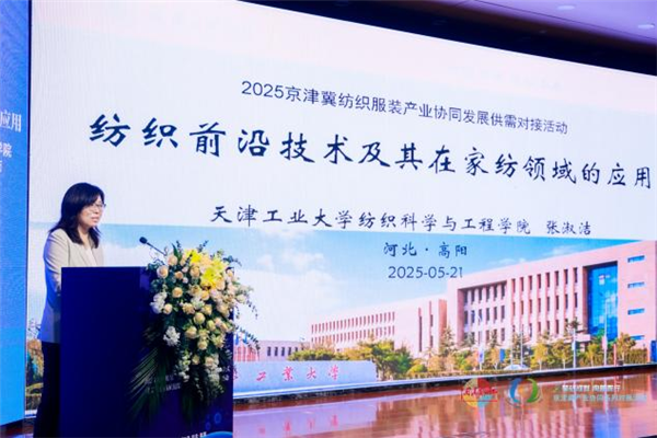 张淑洁《纺织前沿技术及其在家纺领域的应用》主旨演讲 在对谈分享环节,来自北京、天津、河北的企业及院校代表分别从“智造赋能品牌升级”实践经验、绿色生产体系构建路径、地域文化融入产品设计、产学研深度融合助推京津冀纺织产业协同创新等角度进行分享交流,并一致呼吁需进一步打破区域壁垒,共建技术共享平台与人才流动机制。