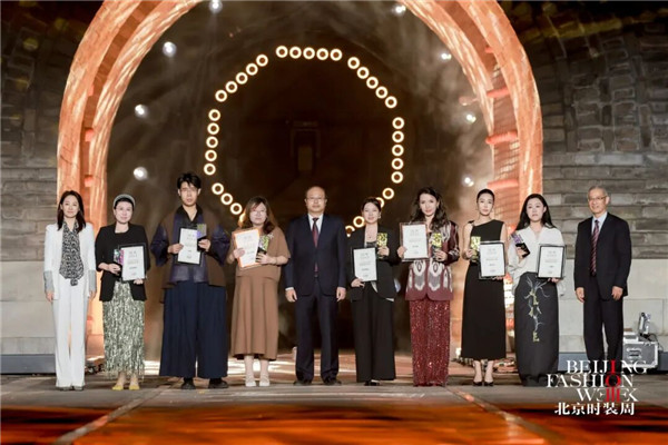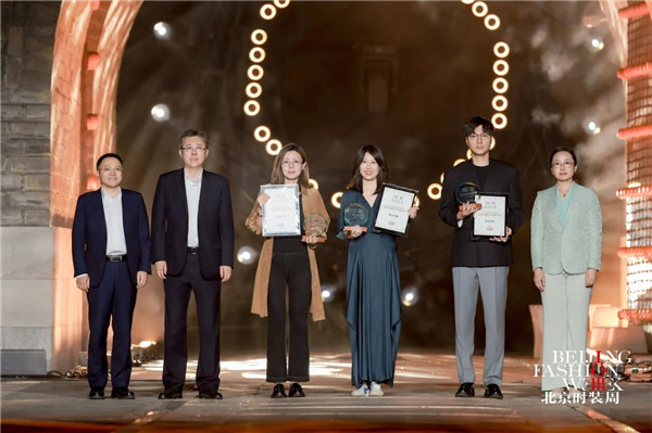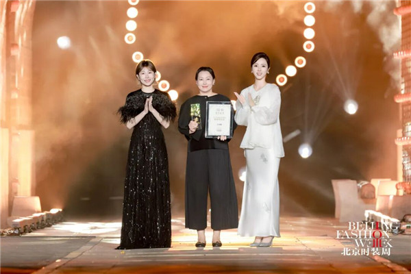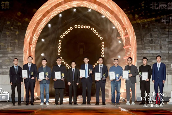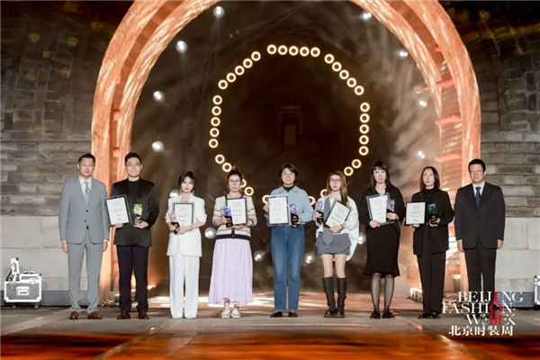 启皓中心代表唐雪松(左一),京投发展商业管理(北京)有限公司副总经理丁洪震(左二),北京荟聚社区及公共关系经理孙颖(左三),北京环汇置业公司(湾里)副总经理王棣林(左四),北京时尚控股公司党委常委、副总经理段体玉(左五),北京古北水镇旅游有限公司经营部总监郭峰(右一),北京金隅琉璃文化创意产业园书记、经理李妍(右二),北京中海大吉巷市场总监聂辉(右三),北京国家游泳中心有限责任公司党总支书记、董事长金延(右四)进行签约仪式 当“紫禁城”大秀的最后一束灯光渐暗,北京时装周的叙事从“文化表达”转向“产业实践”——第二批时尚秀场联盟签约仪式随即登场。来自北京国家游泳中心、湾里WANLI、北京中海大吉巷、北京荟聚、北京金隅琉璃文化创意产业园、檀谷TANKO、古北水镇、启皓中心等首都地标代表与北京时装周落笔签约,这是对十年来“1+N”会场模式的再度升级:让北京的时尚势能,沿着签约的脉络辐射至更多城市;让不同地域的秀场资源,拧成推动中国时尚产业协同发展的“新纽带”,为下一个十年的产业布局积厚成势。 古城新韵下,颁奖盛典的华光已点亮舞台。作为十周年盛典的“荣誉终章”,现场揭晓的不仅有“紫禁城大奖”“国潮创新奖”“新锐设计奖”“商业潜力奖”“时尚跨界奖”“数字潮流奖”等年度奖项,更有“时尚影响力人物大奖”“时尚贡献力品牌大奖”“时尚消费力引领大奖”荣誉大奖——这既是对年度创新实践的肯定,更是对十年同行者的礼赞,每一座奖杯都映照着北京时装周从“起步”到“引领”的足迹。(获奖名单见文末) 值得关注的是,本季北京时装周受到广泛关注与全网热议,人民日报、新华社、中央广播电视总台、北京广播电视台、Madame Figaro费加罗、时装L'OFFICIEL等众多主流及时尚媒体的持续高频报道,#北京时装周##北京时装周十周年#等话题多次登上微博热搜及抖音热点,累计阅读量超过16.6亿,全网直播观看量突破2.58亿次。同期举办的“时尚悦享节”系列活动联合北京市及河北省近百家商业综合体集中上新并开展促销,官方抖音电商账号“北京时装周Select”联动十余个头部商家进行线上直播,实现客流、在线观看量及销售额均创下新高,持续推动消费升级与产业价值链提升。 以东方美学为魂,十年积淀为骨,北京时装周再次写下历史性的闪耀一笔,既是过往十年的有力回响,亦是面向未来的崭新序章。
