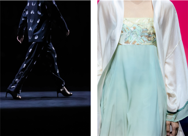 在结构设计上,计文波将中式美学与世界裁剪完美交融,松与紧的平衡、简与繁的交错,让服装的立体空间感极具张力。飘逸的纱质面料与挺括的廓形形成鲜明对比,模特步履间,纱裙如流水般摇曳,既保留了东方服饰的端庄雅致,又契合当下全球时尚圈对“流动感”的追求。正如计文波所言:“文化的传承既不是照用,也不能乱造。”他的服装看不到直白的“中国风”标签,却在每一处细节中渗透着东方哲学,这种“润物细无声”的表达,恰恰是中国国风服饰走向国际的核心竞争力。