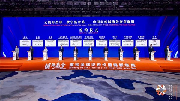 大会现场举行了《2026世界纺织行业趋势展望》发布仪式,“柯桥优选”品牌推广发布仪式、纺织产业AI大模型——“AI布”2.0发布仪式,以及云链布全球、数字新丝路——中国轻纺城海外展贸联盟启动及签约仪式,为全球纺织协同创新提供“柯桥方案”。