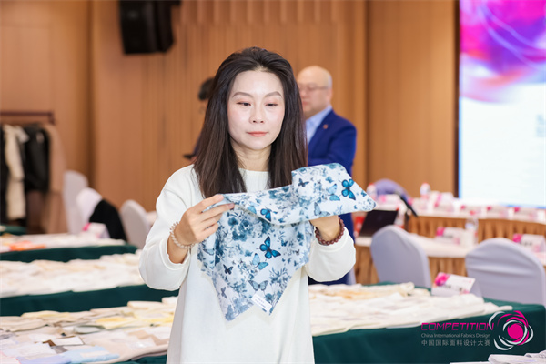 ![]() 纺织产品开发中心副主任陈宝建担任主任评委。专家评审团从材料应用、色彩开发、纹样设计、科技创新、生态环保及市场潜力等方面,对参评面料进行了多维度的综合评审与严格遴选,并为纺织产品创新开发提供了宝贵建议。