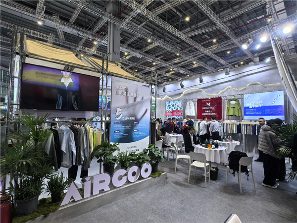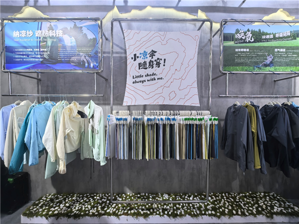 为了紧扣当前纺织行业“科技化、绿色化、场景化”的发展趋势, 嘉耀纺织以“动态透气科技”为核心,全面展示了唤氧纳米透气系列、纳凉纱遮热降温科技、易可丽污渍管理系列三大核心产品矩阵,每一款产品都以精准的市场定位、卓越的技术优势,成为展会现场的焦点。 在核心技术展示上,嘉耀纺织的动态透气科技堪称行业突破性成果。据企业现场介绍,该技术通过独特的弹性折叠结构,可实现拉伸状态下透气性瞬间提升至自然状态的5倍,彻底打破了长期以来静态保暖与动态散热难以兼顾的行业痛点,为户外运动服饰提供了全天候的智能体感管理方案。 其中,唤氧纳米透气系列的升级迭代产品——唤氧PRO与唤氧ACTIVE,更是针对不同运动场景进行了精准优化,兼顾透气性、耐磨性与舒适性,现场展出的成衣样品,让参观同仁直观感受到了科技面料的质感与优势。