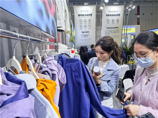 同时,企业每年稳定投入大量资金到新品研发中,每年平均申请约10项专利,本次展出的纳凉纱遮热科技、小绿伞光能转换技术等,均是研发成果转化的典型代表,彰显了企业持续创新的核心竞争力。 在绿色可持续发展领域,嘉耀纺织的实践同样彰显专业素养。本次展会中,企业重点展示了其在环保领域的举措:扩大生物基材料、可降解材料、碳捕捉材料等零碳和负碳材料的应用;采用原液着色、无水染色、低温染色等技术,缩短工艺流程、降低染色能耗;全面推进无氟防水整理,并引进最先进的安捷伦6475氟化物检测设备进行严格管控,完美契合本次展会可持续创新专区的理念,也呼应了全球纺织行业“双碳”目标与绿色消费趋势,成为众多注重环保的采购商的优选合作对象。