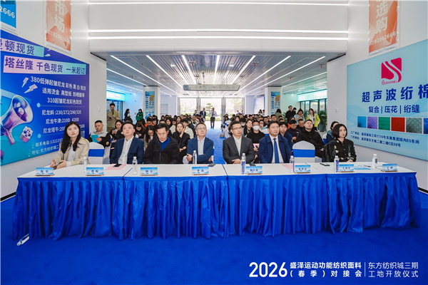 3月30日,由苏州吴江铁工投资发展有限公司主办的“2026盛泽运动功能纺织面料(春季)对接会暨三期工地开放仪式”在江苏盛泽圆满落幕。