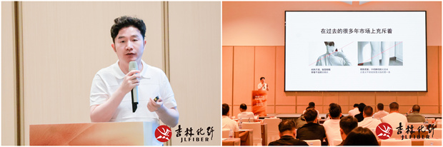 ![]() 马小龙在《华绒®产品多元化开发与应用》的分享中对华绒®的技术优势与性能特点进行了详细解读。他指出,华绒®打造了抗起球、柔软型、蓬体型三大细旦纤维系列产品,可与天然纤维或合成纤维混纺,用于保暖内衣/衬衫、卫衣、打底、居家服饰、婴童服饰、家纺等领域。同时,吉林化纤一方面联合纺纱企业,打破技术壁垒,另一方面合作面料企业,攻克产品痛点,有效提升了华绒®的市场竞争优势。