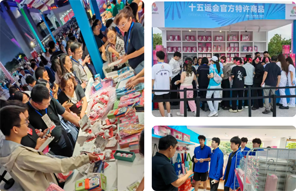开幕式期间,广州奥体中心五环广场的官方特许零售店人气爆棚。吉祥物 “喜洋洋”“乐融融” 系列、岭南特色文创、限量款徽章等20大类两千余款产品备受追捧,部分爆款商品单日补货3次,限量款徽章、冰箱贴更是在开售一小时内售罄。为不辜负广大民众的热情,满足更多消费者需求,线上微信小程序店与员村工人文化宫线下门店同步开售、持续上新,让未能到场的观众也能珍藏赛事记忆。 十五运会