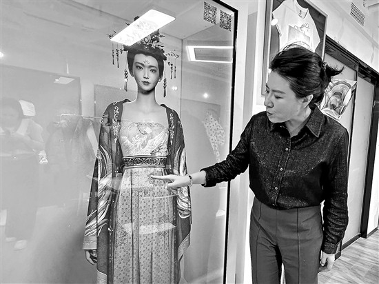 姜钊创新工作室设计的数字人“锦”身高1.7米,神态栩栩如生,服饰雍容华贵,纹理纤毫毕现。程莉莉 摄 阅读提示 一家有着73年历史的老字号纺织服装企业,如何在数字化转型中焕新出发?铜牛集团姜钊创新工作室经过潜心研发,创新应用数字服装多层次面料实时解算技术,并在多项“急难险重”任务中突破一个又一个极限。 “小锦小锦,跳支舞”“好的”……12月4日,在北京市朝阳区铜牛大厦2层,高挽发髻、头戴金钗、身着华服的虚拟数字人“锦”,被记者唤醒后,舞动广袖,翩跹起舞。她身高1.7米,神态栩栩如生,服饰雍容华贵,纹理纤毫毕现,让观看者恍若穿越至盛唐,与千年前的古人相对而立。 “小锦是公司的大明星。”铜牛集团科技分公司副总经理姜钊介绍说,“她”在不少展会和比赛上亮过相,也在参观者的惊叹声中为公司带来一个又一个订单。 记者了解到,姜钊带领团队创新应用数字服装多层次面料实时解算技术,使纺织面料真实度达到99%。这是一种在实时计算环境中精确模拟多层次服装面料物理行为的先进技术,通过层层渲染,可让数字服装的质感、重力感更加逼真。 一件衣服能有多少科技含量? 一件并不起眼的红色棉服,内藏玄机。 姜钊从棉服右侧口袋里取出一根黑色的外接数据线,“它连着衣服的三片内衬,后背一片、前胸两片。”接入移动电源后,衣服可以加热,-30℃时也能保证人体舒适,更令人惊奇的是,它不怕水洗。在北京2022年冬奥会上,这件衣服为保障志愿者在极寒天气雪地作业发挥了重要作用。 在铜牛集团科技分公司的展厅里,还有一件黑色斗篷吸引了记者的注意。服装设计师马敏介绍说,这是专为高原公路建设者研发的,今年获得了国家实用新型专利授权。它既可以当衣服穿,也可以作为睡袋,还能携带氧气,方便工人在高原施工时使用。 令团队颇为自豪的是,他们把低温印花技术首次用在了尼龙面料上,解决了这种面料无法高温印花的难题。 “冬奥会时,原本给运动员们设计的服装是涤纶面料的,但在超低温条件下,涤纶面料不如尼龙面料,会发硬变脆,影响保暖。为了体感更加舒适,我们决定升级为尼龙面料。”姜钊回忆道,没想到这个决定给自己挖了个“坑”。 尼龙面料从石油中提炼而来,遇到高温会融化,而数码印花时温度高达180℃。“不知道经过了多少次实验,还是失败。”姜钊说,那时的她“甚至感到绝望了,成宿成宿睡不着觉”。 转机发生在参观一家印刷厂之后。姜钊发现,在40℃低温下印出来的花纹十分鲜亮、牢固。能否把这种技术应用在尼龙面料上?经过多次烘焙、晾晒、冷冻实验,他们终于成功了。 “看,三年了,这件衣服上的大面积印花还是一样稳定,不变色不起翘。”姜钊说,这项技术还被应用到今年2月于哈尔滨举办的亚冬会上。此外,一些服装品牌也闻讯前来寻求技术合作,尼龙低温印花技术随之广泛应用开来。 姜钊团队的一小步,推动了产业发展的一大步。 纺织业的未来要怎么发展? 工作室里,设计师们正在电脑上进行3D建模,打造“锦”的现代版,一根根头发进行绘制、一根根纤维还原布料的褶皱感、垂坠感……完全实现了服装的数字化设计,让铜牛集团科技分公司真正站上了产业链的顶端。 “传统服装产业开发周期长,从萌生想法、设计样衣,到裁缝打版、车间生产,再到出图、到达顾客手里,一般要花费180天。”姜钊介绍说,“即使优化生产流程、使用高级设备,前期研发也需要120天以上。” 效率低、资金浪费、样衣库存积压严重等问题,普遍困扰传统服装企业。 探索数字化设计之前,姜钊在铜牛集团从事进出口贸易工作。在跟国外客户打交道的过程中,她开始思考一个问题:“客户需要你,你就有订单;客户不需要你,一些工厂很快就撑不下去。中国的纺织工业未来要怎么发展?” “必须实现研发设计端的数字化!”她的语气温柔而坚定,“只有这样,才能真正做到降本增效,才能跻身产业链前端,在全球市场竞争中拥有话语权。” 那是2016年底。“没有产业集群,没有汉化软件,甚至全世界都没有数字服装这个概念。”年轻的姜钊和助理泡在国外论坛上寻找合适的软件、向游戏公司“取经”。“但游戏里的服装基本是铠甲,看上去硬邦邦的,我们要做出真实的面料质感。”他们反复实验、不断完善,数字服装越来越逼真。 技术研发成功后,落地又面临困难。“以前裁缝们脖子上挂着皮尺手工打版,后来,他们学会了用电脑。可刚刚熟悉了,又要去做数字服装,相当于在3D数字人身上直接设计服装。这可难坏了师傅们。”姜钊笑着说。 不过,这样做的好处很快显现。无须制作实物样衣、无须印染,新品研发周期压缩至15天,一年高达千万元的费用省下来了,而且更加环保。北京2022年冬奥会正值新冠疫情期间,姜钊和伙伴们受命研发运动员及志愿者服装,因无法与奥组委见面,他们制作了数字服装视频,顺利通过了审核。 科技公司、服装企业多如牛毛,铜牛集团科技分公司凭什么异军突起?“科技公司里我们是最懂服装的,服装公司里我们是最会做数字人的。”姜钊笑言,“主打一个跨界!” 下一个极限在哪里? 诞生于1952年的铜牛集团是一家老牌纺织服装业国企,广为人知的产品是内衣与家居服。参与生产管理多年的该集团党委副书记、工会主席杨宏伟告诉记者,他们2018年推出姜钊创新工作室,不仅是为了契合数字化时代的发