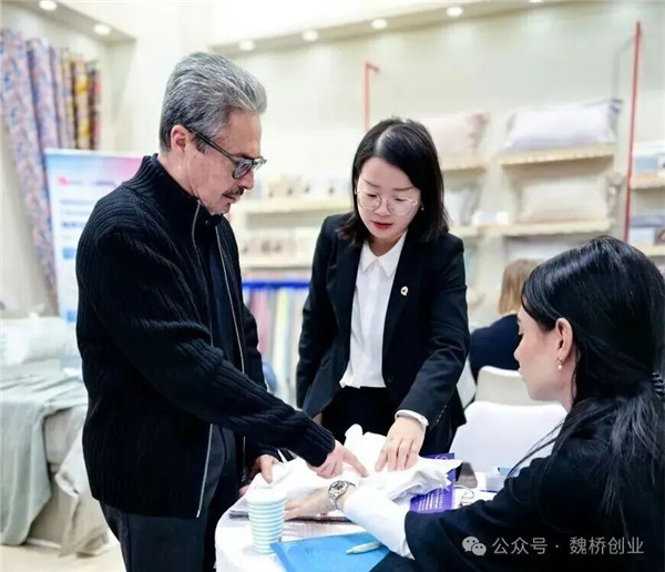 魏桥创业展出的植物染、镶嵌纺防螨、莱赛尔石墨烯、陶瓷发热等系列家纺产品成为展会焦点之一。所有产品秉持绿色环保核心理念,从原材料甄选到生产全流程践行低碳标准,突出可持续性。其中,植物染系列兼具抗菌与环保特性;镶嵌纺防螨产品以优异防螨效果,充分契合健康家居需求;莱赛尔石墨烯、陶瓷发热等功能性产品则将新型材料与家纺设计深度融合,实现了保暖、抑菌等多元功能,精准匹配消费升级趋势。