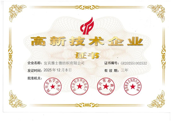 近日,四川省科学技术厅发布了四川省2025年高新技术企业认定名单。丝丽雅集团旗下宜宾雅士德纺织有限公司顺利通过四川省2025年第三批高新技术企业认定,成功跻身国家高新技术企业行列。