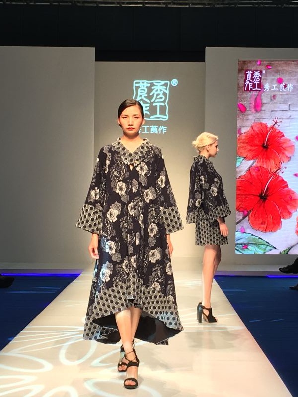 在“花漾禅心”时装秀上,“秀工莨作”的董事长兼首席香云纱服装设计师蔡敏带领模特们展示了20多套融合针织和香云纱面料而制作的晚礼服,通过拼接、刺绣等新做法、新技术,为这些功能面料带来时尚风与“高颜值”,赋予了针织面料的时尚魅力。“时装秀上呈现华美效果的针织面料,是我们将针织向时尚性转变的成功尝试”,阎华英女士表示。