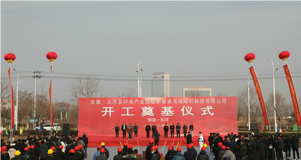 县长刘中原在致辞中指出,2021年是五河纺织服装首位产业破茧蝶变的一年,我们成功创建省级纺织服装特色产业集群基地,签约引进了14个纺织服装产业项目。占地320亩的绿色高端纺织产业园、占地108亩的纺织集聚区相继开工建设,印染产业从无到有,纺织服装聚势变强。今天,规划556亩的印染产业园和总投资6.1亿元的海特服饰项目开工建设,对五河纺织产业发展起到了重大的开拓引领作用,标志着五河纺织产业正式进入了“纺纱、织造、印染、家纺、成衣”于一体的全产业链发展,向着聚力打造长三角最具竞争力的纺织服装产业基地迈出了坚实的步伐。