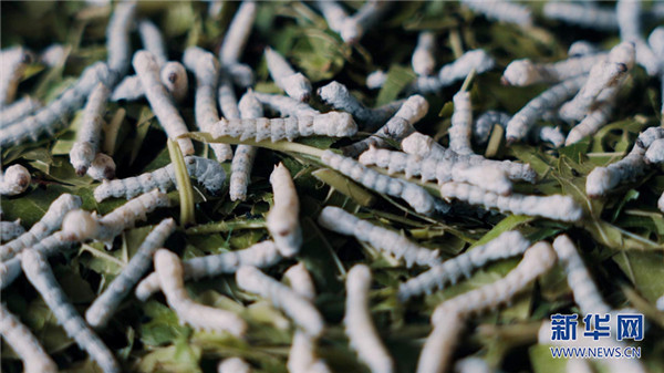 蚕宝宝正茁壮成长。新华网 彭博 摄