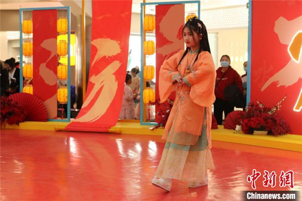 图为青少年汉服爱好者李若源。 崔景圣 摄 汉服爱好者李若源年仅13岁就已经斩获多项汉服模特大赛奖项,本次青少年汉服秀,她又一次摘得“花魁”桂冠,她说:“我很喜欢红楼梦中的薛宝钗,2020年有机会被模特学校老师选中,亲自扮演薛宝钗的角色,我就此喜欢上了汉服扮演,我认为这是我们中华民族的文化自信,我们要继承传统文化中优秀的部分,并去传承他。”李若源说道。 中国传统节日使群众更深刻地感受到中华优秀传统文化,据悉,天津将继续深耕区域文化资源,增强文化供给能力,开展更多群众喜闻乐见的文化活动,增强中华文化自信。 (来源:中国新闻网) 声明:凡于本网文章前标有“CTEI网讯”之文章即表示为本网原创、编译、第一信息源、第一媒体合作方等,如需转载请务必标注文章来源自“中国纺织经济信息网 www.ctei.cn”,本网保留法律权利。