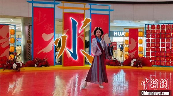 图为青少年汉服爱好者白安媛。 崔景圣 摄 在天津市河西文化馆传统文化市集,猜灯谜、逛非遗、品美食,闹元宵……传统文化融入时代元素,让人们在欢乐中领略到了中国传统文化的深厚底蕴,感受到了节日浓烈的喜庆氛围。活动现场书画艺术家挥毫泼墨,现场为群众画小兔子、书写兔年祝福语,糖画、面人等非遗传承吸引了很多家长带着孩子前来体验。