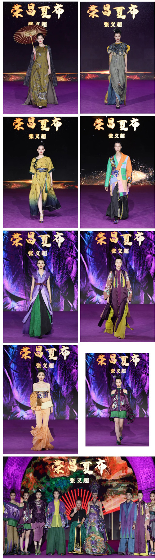 ![]() 时值中国“非遗之城”荣昌建县1265周年、得名650周年、国家高新区成立30周年,在非遗沉浸式实景秀场中,荣昌夏布、荣昌陶、荣昌折扇三大国家级非物质文化遗产与中国时装设计“金顶奖”设计师、中国纺织非物质文化遗产推广大使张义超的时尚创意夏布新作碰撞,共同演绎出独具荣昌人文特色的非遗时尚美学。