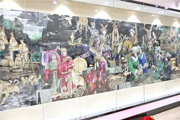 同江市非物质文化遗产展示馆中描绘赫哲族传统生活的壁画。新华社记者 丁赫 摄 今年72岁的尤文凤是国家级非物质文化遗产“赫哲族鱼皮制作技艺”传承人。据她介绍,鱼皮曾是赫哲族用来制作衣物的重要原料,经过熟制等工序后,鱼皮会变得柔软而有韧性,穿在身上也不会觉得扎。在记忆中,她的母亲曾给她的父亲制作过一条鱼皮裤子,鱼皮做的裤子抗磨,父亲上山打猎时,就时常穿着这条裤子。