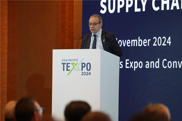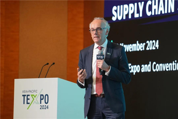 国际纺织制造商联合会秘书长Christian P. Schindler作“全球纺织服装行业的现状、挑战及发展趋势”的主题发言,立足ITMF《全球纺织业调查》中2024年9月区域和细分市场的详细情况、ITMF 2002—2023年纺织机械出货量统计数据,分析了塑造全球纺织品价值链的走势——现阶段,全球纺织品价值链正面临多重塑造趋势,除了传统的采购和生产环节,更在可持续性和循环性、监管加强、二手市场兴起、快时尚、全球需求与消费份额以及工业和供应链的数字化等多个方面展现出新动向。这将推动全球纺织品行业向更加环保、可持续、高效、个性化的方向发展。 Christian P. Schindler表示,采购转移揭示了全球纺织品市场的竞争格局正在重塑,凭借强劲的基础和持续的投资,中国纺织品出口仍然保持在高位。与此同时,孟加拉国、越南、柬埔寨等国家正在逐渐崛起,成为纺织品生产的新势力。随着环保意识的提高,减少纺织品浪费、提高纺织品再利用率已成为行业共识。数字化创新更是为生产、消费、设计和物流等多个环节赋能,加速推动全球纺织品产业链的变革。