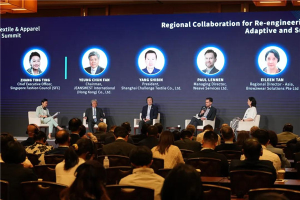 “专题讨论环节一”由新加坡时尚协会首席执行官Tingting Zhang主持,真维斯国际(香港)有限公司董事长、香港纺织商会会长杨勋,上海嘉麟杰纺织品股份有限公司总裁杨世滨,Weave Service Limited总经理Paul Lennen,Browzwear Solutions Pte Ltd亚洲地区总监Eileen Tan等嘉宾聚焦“区域合作共筑灵活、弹性、可持续的纺织服装供应链体系”,分析全球经济格局下,区域合作在纺织服装供应链中扮演的新角色,以及带来的新机遇,分享企业如何通过区域合作,增强供应链的灵活性和弹性,以应对快速变化的市场需求,探讨技术创新和数字化转型在区域合作中的重要性,以及如何通过科技手段提升供应链的整体效能,为行业同仁提供参考经验,为推动纺织服装供应链向更加灵活、弹性、可持续的方向发展助力。