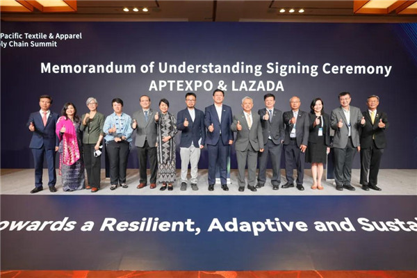 “专题讨论环节二”由Trackland Sdn Bhd Group 首席执行官、东盟纺织工业联合会荣誉常任秘书长、马来西亚纺织制造商协会会长Regina Leong主持。Best Industrial Co.Ltd 总经理、缅甸制衣协会秘书长Daw Khine Khine Nwe,PT SIPATA MODA INDONESIA 总经理、印度尼西亚纺织协会副会长lan Syarif Tan,United Textile Mills Co.Ltd 执行董事、泰国纺织工业联合会秘书长Nutra Uttamapinant,孟加拉针织品制造与出口商协会(BKMEA)会长、MB Knit Fashions Ltd.总经理Mohammad Hatem,天虹国际集团总裁助理兼进出口部总经理张春梅,胜科集团国际市场营销部助理副总裁Simon Goh等嘉宾热议“互利共赢:亚太产能合作的再激活”,聚焦亚太地区纺织服装制造业在技术创新、市场拓展、品牌建设等方面优势,剖析了技术转移、文化和政策差异等诸多挑战,探讨如何更好地开展区域合作,以提高纺织服装产业链整体竞争力,推动亚太纺织服装产业的转型升级和可持续发展。 本次论坛上,还举行了“Branding Through APTEXPO” 新加坡亚太展组委会与LAZADA集团合作谅解备忘录签约仪式。