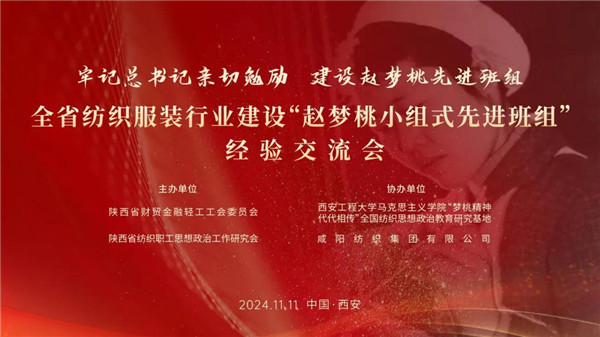 为深入贯彻落实习近平总书记对赵梦桃小组的亲切勉励,进一步推动纺织行业“科技、绿色、时尚”高质量发展,11月12日,由陕西省财贸金融轻工工会、陕西省纺织职工思想政治工作研究会主办,西安工程大学马克思主义学院“梦桃精神 代代相传”全国纺织思想政治教育研究基地、咸阳纺织集团有限公司承办的陕西省纺织服装行业建设“赵梦桃小组式先进班组”经验交流会在西安成功举办。