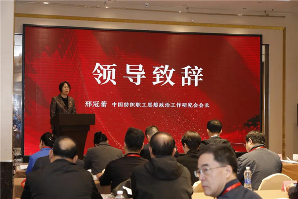 中国纺织职工思想政治工作研究会会长邢冠蕾在致辞中首先代表中国纺织职工思想政治工作研究会向大会表示祝贺,对五年来陕西纺织系统坚定不移践行习近平总书记亲切勉励,大力弘扬“梦桃精神”,扎实开展建设“赵梦桃小组式先进班组”活动,坚持以劳模精神建功育人,以创新管理强基固本,以集体智慧建功立业所取得的成绩给予充分肯定,号召大家在今后工作中,把深入践行习近平总书记亲切勉励与学习贯彻党的二十届三中全会精神、习近平总书记历次来陕考察重要讲话、重要指示相贯通、相融合,继续当好“梦桃精神”的传承者、弘扬者、实践者,以不畏艰难、奋发进取、砥砺前行的奋斗者姿态,将“梦桃精神”发扬光大。