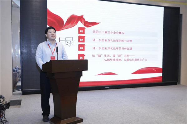 本次会议还特别邀请西安工程大学马克思主义学院副院长郭松围绕“党的二十届三中全会精神”和“传承弘扬‘梦桃精神’”,为大家讲授了一堂生动又深刻的党课。 风劲帆满正起航,重任千钧再奋蹄。“梦桃式班组”是一种荣誉,更是一种责任。五年前,习近平总书记的亲切勉励对“梦桃精神”赋予了新的精神内涵和时代价值,为更好地传承和弘扬“梦桃精神”指明了前进方向。中国纺织人必将以“梦桃精神”为强大精神力量,推进“科技、时尚、绿色”高质量发展,大力探索纺织产业的新质生产力,为推进中国式现代化建设作出新的更大贡献。