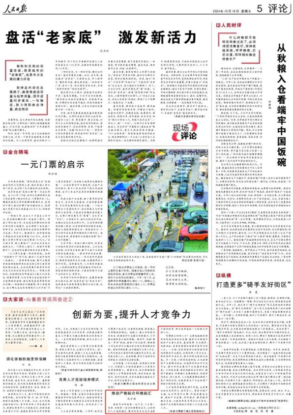 10月18日,《人民日报》第五版“大家谈·向着教育强国奋进”专栏刊发西安工程大学党委书记马万清署名文章《推动产教融合科教融汇》。文章围绕“提升人才竞争力”主题,介绍了西安工程大学在培养拔尖创新人才方面的创新探索。