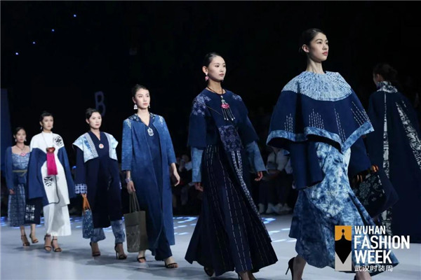江城武汉主导的本次非遗盛会,秉承了传统与时尚结合的理念,以T台为载体展示,模特们身着精美的非遗服饰,尽显传统与时尚融合之美。这些服饰设计既有浓郁的民族风情,又不失时尚感,给参会人员带来了一场饕餮盛宴。湘西苗族挑花蓝染服饰成为全场亮点,挑花纹样精美绝伦,每一朵花、每一只鸟都仿佛在诉说着苗族古老的传说,寄予着创新发展的希望。据悉,此次亮相的湘西苗族挑花蓝染服饰系列作品,由武汉纺织大学服装学院王妮副教授带领的团队设计完成。设计师以独特的创意,将湘西泸溪苗族挑花传统技艺、荆楚蓝染传统技艺与现代礼服设计进行融合,对传统技艺进行了一次完美诠释。