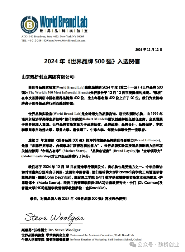由世界品牌实验室(World Brand Lab)独家编制的2024年度(第二十一届)《世界品牌500强》排行榜于12月12日在美国纽约揭晓。