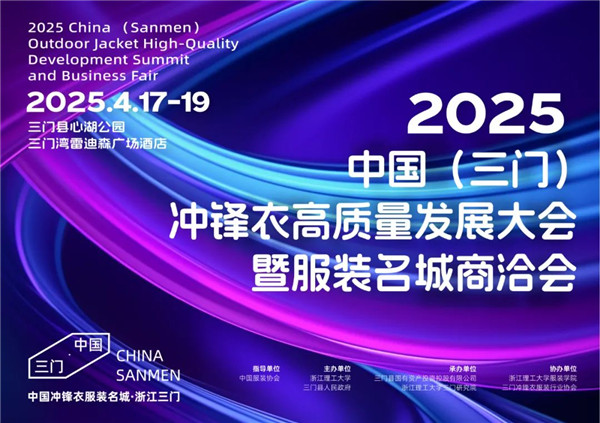 作为“2025中国(三门)冲锋衣高质量发展大会暨服装名城商洽会”(以下简称“三门大会”)的重要内容,本次大会以“内需新势能,质领新赛道”为主题,将汇聚行业专家、重要品牌以及垂类买家,成为首届聚焦冲锋衣品类,而且集经验交流、技术合作、商贸洽谈于一体的冲锋衣行业专业盛会。 “三门大会”旨在凝聚行业智慧与力量,激发产业创新活力,推动冲锋衣产业向高科技、高效能、高质量方向迈进,为行业发展注入新动力,构建新的竞争优势,助力三门冲锋衣产业在新时期实现更大突破与跨越,引领行业发展趋势,迈向更加辉煌的未来。