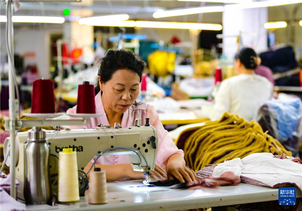 7月2日,工人在化德县服装创业园一服装生产企业车间缝制服装。 (来源:新华网 康文魁 摄影报道) 声明:凡于本网文章前标有“CTEI网讯”之文章即表示为本网原创、编译、第一信息源、第一媒体合作方等,如需转载请务必标注文章来源自“中国纺织经济信息网 www.ctei.cn”,本网保留法律权利。