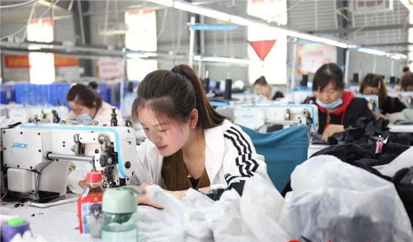 近日,走进河南省商丘市睢阳区勒马镇宋破楼村的河南省盈科泰服饰有限公司生产车间内,缝纫机“哒哒”作响,年轻一些的工人在低头娴熟地操控着机器,缝制着一双双手套,年龄大一些的工人正在为手套剪线头或整理手套,构成了一幅忙碌有序的生产场景。