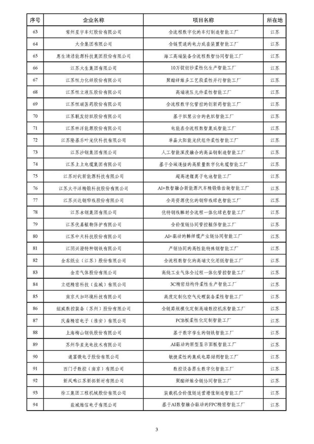 日前,根据《关于开展2025年度智能工厂梯度培育行动的通知》(工信厅联通装函〔2025〕251号),工业和信息化部装备工业一司将拟入选的2025年度卓越级智能工厂项目名单进行公示。 其中,四家印染及相关企业入选。包括愉悦家纺有限公司的精益高效生态家纺智能工厂、浙江传化化学品有限公司的高端纺织印染助剂智能工厂、江苏联发纺织股份有限公司的基于织慧云台的色织智能工厂以及福建东龙针纺有限公司的AI+经编染整全链路智能工厂。