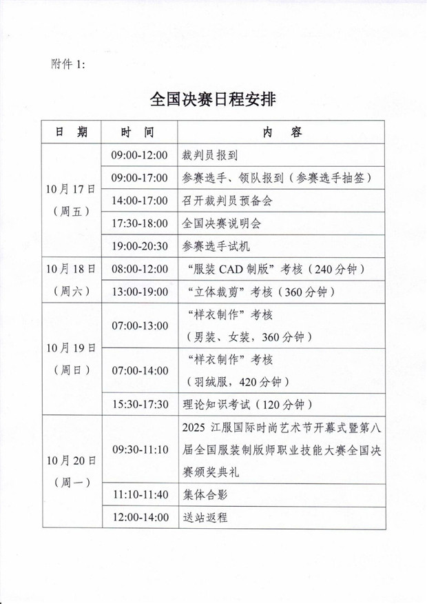 2025年10月17—20日,2025年第八届全国服装制版师职业技能大赛全国决赛将在江西服装学院激烈开赛。十佳服装制版师、最佳CAD制版奖、最佳制作工艺奖、最佳立体造型大奖花落谁家,令人格外期待! 2025年第八届全国服装制版师职业技能大赛由中国服装协会、波司登国际控股有限公司联合主办,江西服装学院协办,上工富怡智能制造(天津)有限公司、全国各省(自治区、直辖市)服装行业协会(商会)提供支持。