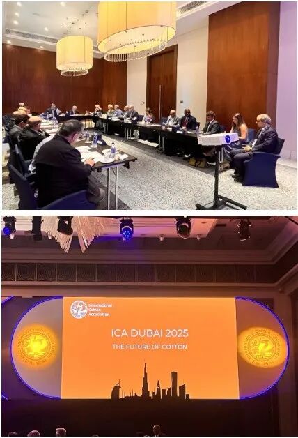 2025年10月8日至9日,国际棉花协会(ICA)年会在迪拜隆重举行,来自36个国家的670名行业代表参会,中国棉花协会派员受邀出席。 本次会议聚焦“棉花未来发展”“全球宏观经济与贸易影响”“纺织品价值链风险”等核心议题,与会代表围绕棉花产业可持续发展、技术创新及国际合作路径展开深入研讨,为全球棉花产业协同发展凝聚共识。 会议期间,中国棉花协会作为国际棉花协会合作委员会(CICCA)成员参加了全体会议,就国际贸易规则履行、全球棉花与纺织业形势等议题展开讨论。会议还完成了财务报告审议、CICCA轮值主席和副主席选举等议题,并确定了2026年会议时间与地点。 (来源:中国棉花协会) 声明:凡于本网文章前标有“CTEI网讯”之文章即表示为本网原创、编译、第一信息源、第一媒体合作方等,如需转载请务必标注文章来源自“中国纺织经济信息网 www.ctei.cn”,本网保留法律权利。
