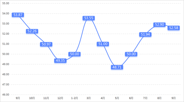 数据显示,9月份,全国纺织服装专业市场管理者景气指数和商户景气指数均保持上升态势,两项指数均位于荣枯线50以上。 1、管理者景气指数上升0.16个百分点 从管理者景气指数来看,总指数中,9月管理者景气指数为52.42,较上期上升0.16个百分点;经营环境指数为54.84,较上期上升0.65个百分点。 分项指数中,经营总额指数为52.58,较上期下降0.32个百分点;物流发货量指数为52.58,较上期下降0.32个百分点;客流量指数为52.90,较上期下降0.33个百分点;开门率指数为52.26 , 较上期上升1.29个百分点;租金指数为51.61,较上期上升1.29个百分点;电商销售指数为52.58,较上期下降0.65个百分点。 2、商户景气指数上升2.39个百分点 从商户景气指数来看,总指数中,9月商户景气指数为52.69,较上期上升2.39个百分点;经营环境指数为53.57, 较上期上升1.10个百分点。 分项指数中,销量指数为55.03,较上期上升3.90个百分点;平均售价指数为53.99,较上期上升2.86个百分点;盈利指数为54.97,较上期上升3.84个百分点;综合成本费用指数为48.95,较上期上升0.15个百分点;库存指数为50.14,较上期上升1.34个百分点;电商销售指数为53.08,较上期上升2.28个百分点。