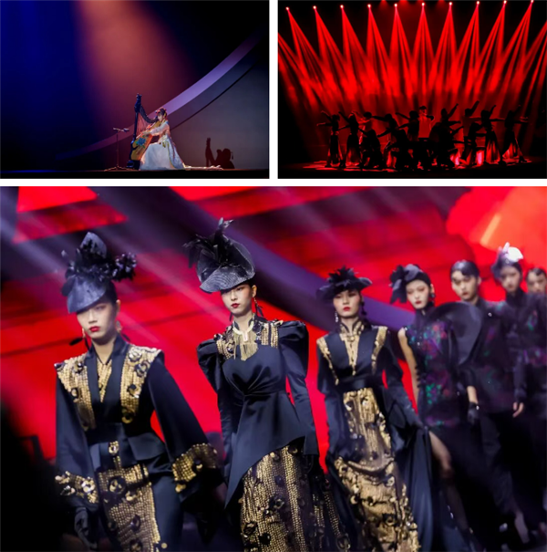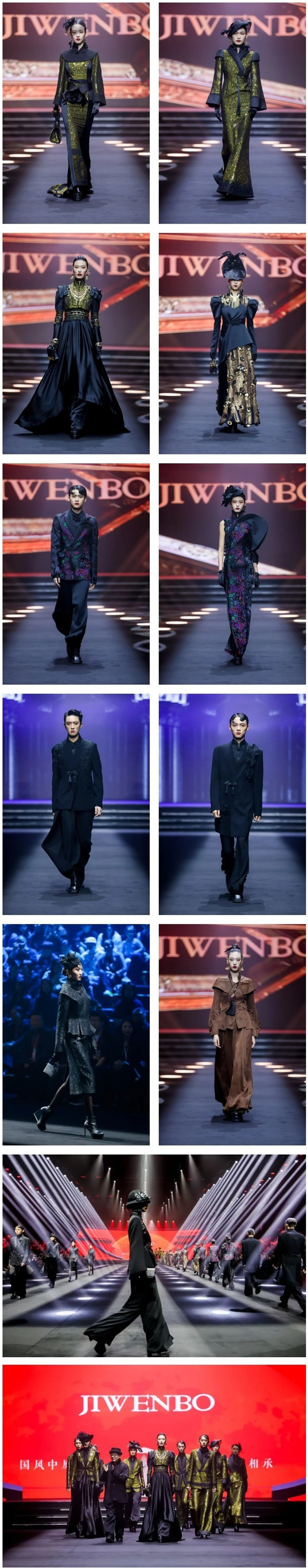 在一场美轮美奂的国风舞蹈表演后,开幕大秀将活动推向高潮。“金顶奖”设计师计文波以其同名国际品牌JIWENBO,呈现了一场融合传统与现代的视觉盛宴。大秀服装通过缂丝刺绣与数码印花的交融、汉服宽袖与西式剪裁的结合,生动诠释了“衣以载道”的当代价值。