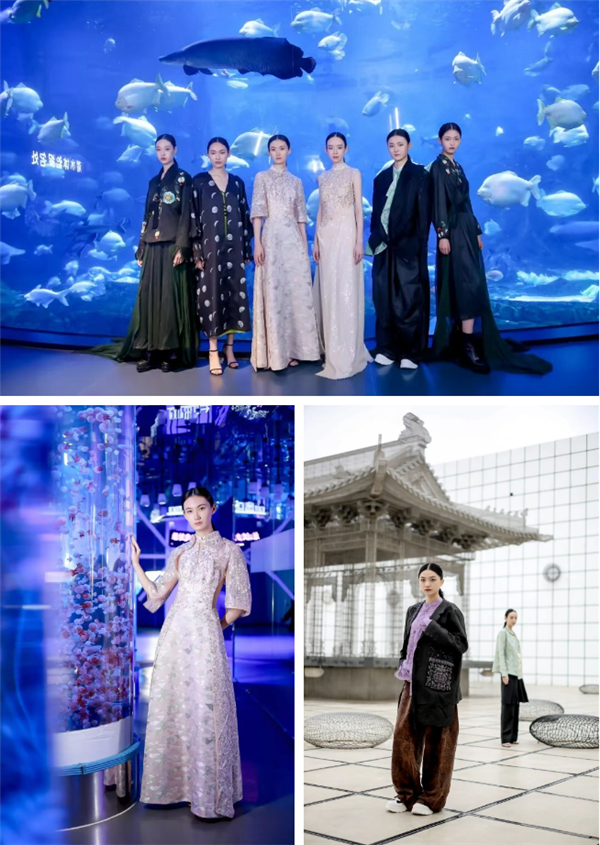 国风赛道能否实现持续发展,关键在于打通“设计-供应链-消费场景”的完整闭环。本届时尚周以创新实践对此作出了有力回应——通过将秀场从传统T台延伸至整个中牟新区的文旅场景,实现了产业生态的立体构建。 中牟新区八个主题乐园——只有河南・戏剧幻城、建业电影小镇、郑州海昌海洋公园、郑州绿博园、方特欢乐世界、方特水上乐园、方特梦幻王国、方特中华复兴之路,联动品牌JIWENBO、黄刚、天玺、涂月、织造司、三寸盛京,共同打造一场全域参与的国风盛宴。超模毛楚玉、田霖、刘瑞华等十位模特空降各主题乐园,带领观众开展“国风快时尚主题快闪”打卡,让时尚从秀场真正走进生活场景。