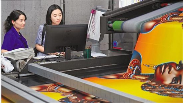 记者(左)尝试用AI布设计花型。 记者 金汉青 摄。 输入文字或样图,几分钟就设计出花型 走进永通,只见大厅里陈列着各式各样的布料。在这里,每天有几万米的布料被印染出来。 我们在一台笔记本电脑上打开AI布,初始界面很简洁,左边一列分为AI问答、头条热榜、行业动态、政策规则、数据产品五类,方便使用者了解实时的纺织行业信息。 “以前,我们设计一个花型,一般最短要3天,难度高的需要一周。现在用AI布几分钟就能出图,设计效率大大提升。”永通公司副总经理毛学泽提到AI带来的变化时难掩兴奋。 “我们主要为客户提供个性化定制产品,90%以上出口中东或者非洲。”毛学泽介绍,永通在花型设计方面较早尝试AI布应用,目前公司有两款比较火的花型,一个是非洲传统女性印花,一个是带有中国扎染风格的花纹。 “按照传统流程,设计师需要具备一定的基础知识,比如修线条、做花型循环等。现在AI布可以一键生成。”毛学泽用相机中的“傻瓜机”来形容AI布,并邀请我们现场试用。 “请设计一款布料,面向非洲用户,图案主体是一位头戴传统饰品的非洲女性,背景为暖色调。”略作思考,我们在聊天框中输入指令。几秒钟后,电脑中跳出几张图片和一长串文字。 只见设计图以黄色为背景,主体是一位非洲女性的侧脸,头发高高盘起,戴着偌大的耳饰和头饰。设计图两侧的花纹可以衔接,以保证花型在印染时连续、不间断。我们不禁有些惊喜,没想到设计小白也能轻松设计出动人的花型。 毛学泽介绍,日常工作中设计师可在AI布的帮助下生成初稿,然后还会根据具体情况进行调整。 除了文字描述,给出样图也可以用AI布辅助生成图片。由于审美偏好与企业风格的差异,最终成稿仍然需要人工把关。“毕竟图的风格和人的审美直接相关。”来自柯桥区现代纺织产业服务中心、AI布大模型开发的负责人王韬介绍,如果想让AI布生成的图片符合更多企业的风格,需要提供足够多的数据,让大模型进行训练,这样才能适配需求。